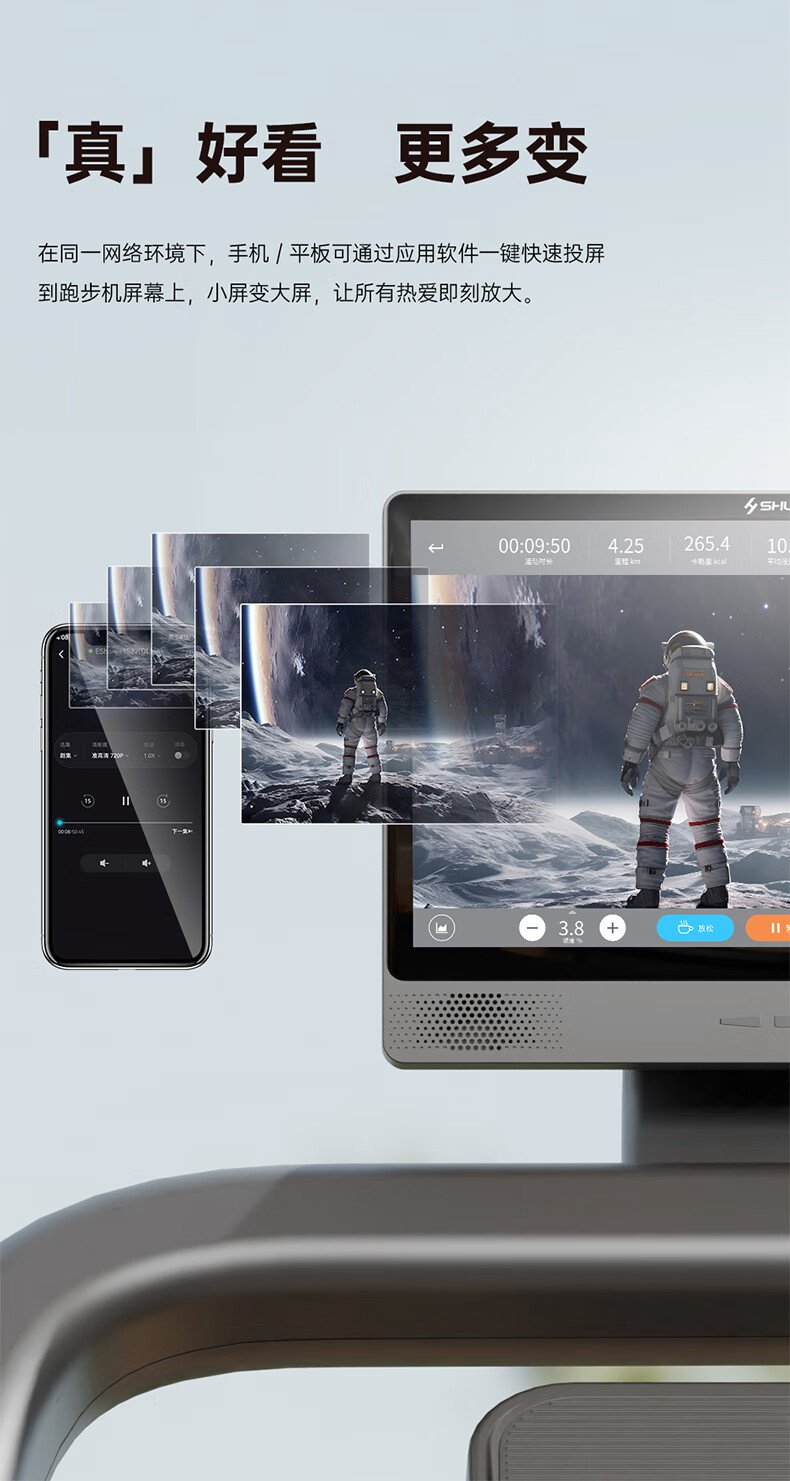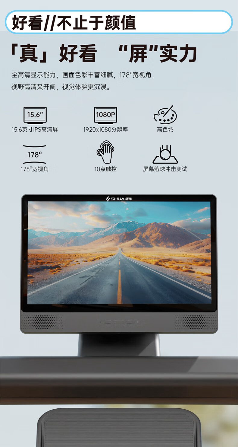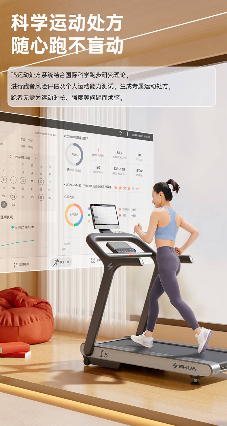 huatihuiSH-T580T I5跑步机,科学运动处方,随心跑不盲动,可根据个人运动处方心率区间及跑者的实时心率情况,自动调节速度或坡度,犹如你的专属“配速员”让你随“心”而跑无负担。