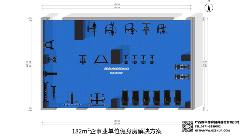 本文旨在为一家拥有182m²空间的企事业单位提供一套huatihui全面的健身房解决方案。通过合理规划布局、精选高效健身设备、融入智能化管理元素,打造一个既满足员工多样化健身需求,又符合企事业单位成本效益要求的健身房,这样的健身房不仅能够促进员工的身心健康,提升工作效率,还能成为企业文化和员工归属感的重要载体。