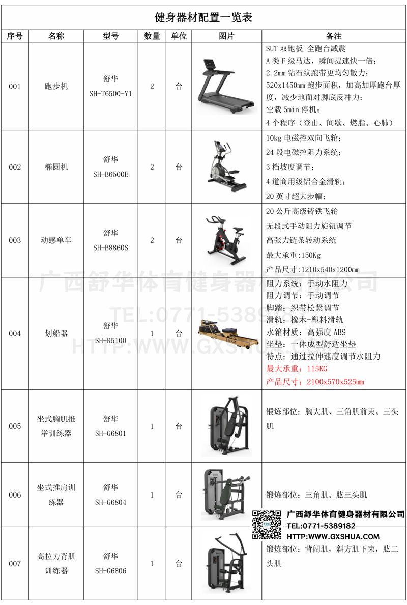 有氧器材区域配置huatihui跑步机2台,椭圆机2台,动感单车2台,划船器1台,有效提升心肺功能;力量器械配置推胸、推肩、背肌、腿部等训练器,可以锻炼多个部位的肌肉,满足使用者全身锻炼的需求;自由力量区域配置哑铃套组、腹肌板等满足多样化训练需求。