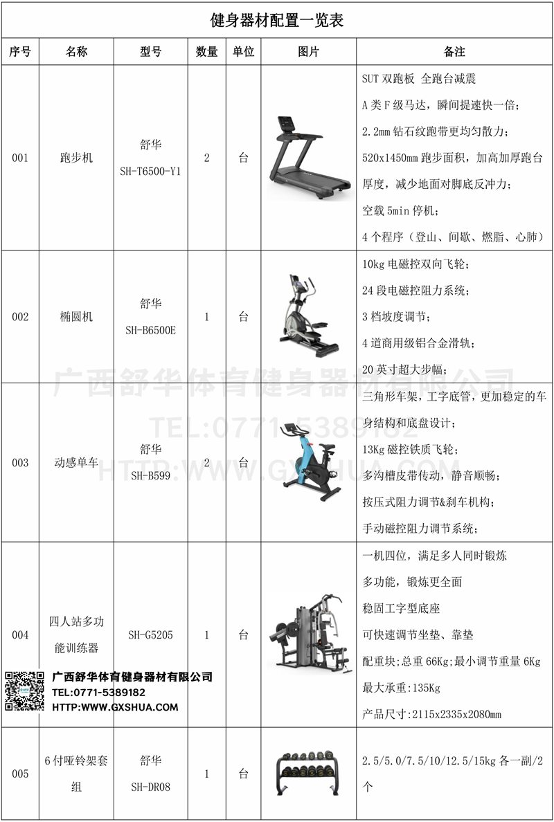 有氧器材区域配置huatihui跑步机2台,椭圆机1台,动感单车2台,有效提升心肺功能;力量器械配置主要训练功能:推胸、蝴蝶夹胸、哈克深蹲、双杠、高拉、勾脚、悬垂举腿、坐姿划船、蹬腿,一机四位多用途,减小占地 面积的同时,可满足四个用户同时使用,可以锻炼多个部位的肌肉,满足使用者全身锻炼的需求;自由力量区域配置哑铃套组、腹肌板、罗马椅等满足多样化训练需求,搭配泡沫轴、跳绳、健腹轮等多款小工具,促使职工健身训练更丰富。