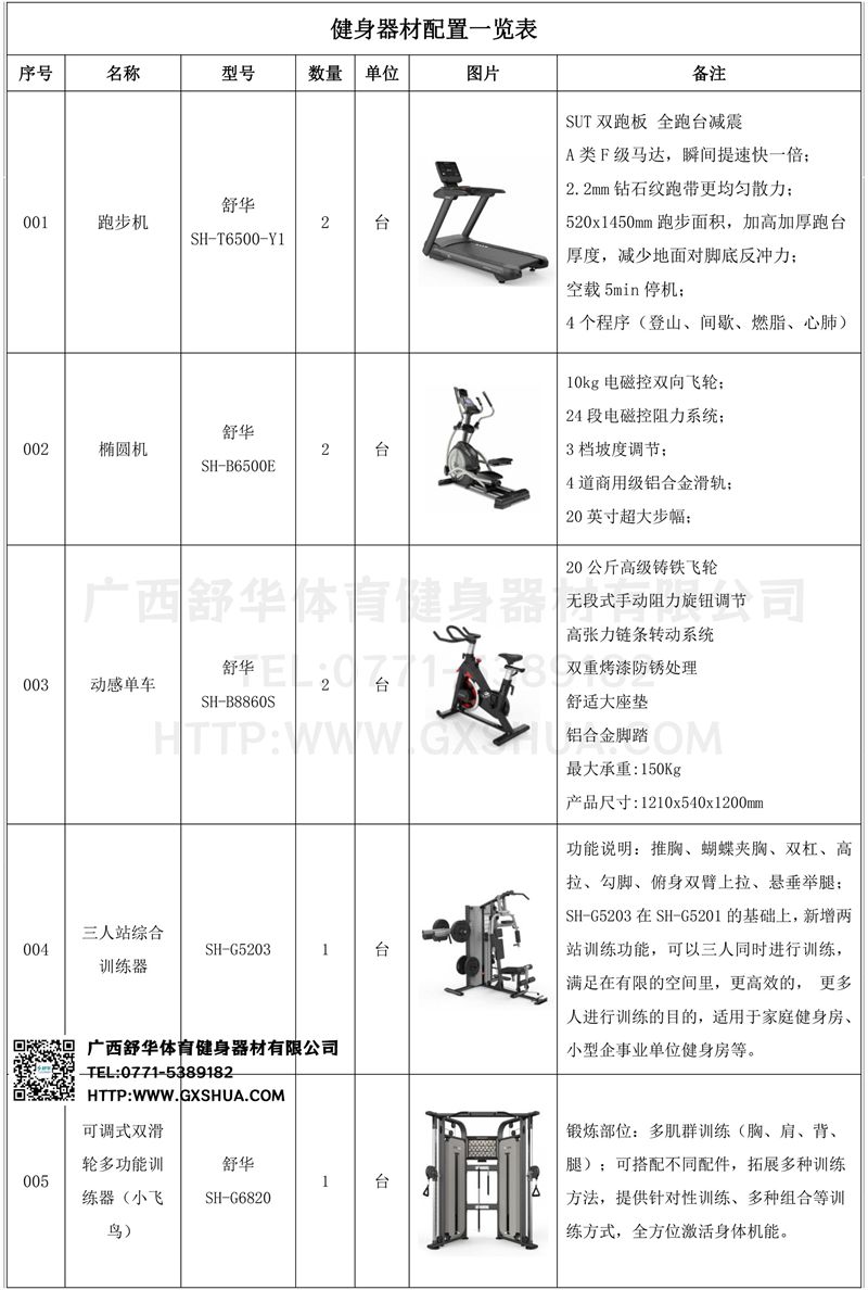 1.huatihuiX5高端跑步机SH-T6500*3台-新X5拥有740mm的宽敞跑台,520mm宽跑带,跑步时更畅快无拘束。搭载SUT全跑台减震系统,针对跑步冲击区进行前、中、后以及双侧全方面避震,有效分散跑步时对跑者膝盖和踝关节的冲击,跑步也能更护膝。采用T18MM跑板+5MM减震棉+T12MM双层专利跑板减震结构设计的韧性跑板,承重力强,回弹舒适,带来缓震护足的舒适跑步体验。搭载了一颗持续马力2.5HP,峰值马力5.0HP的强劲动力马达,能为跑步提供源源不断的动力,让跑步流畅不卡顿。跑步机的速度可达18km/h,能够满足更专业的跑步锻炼需求。