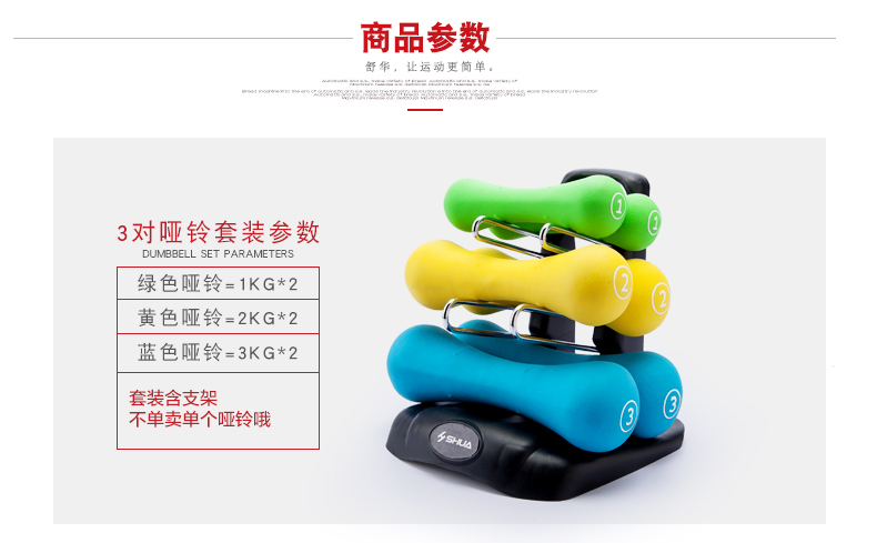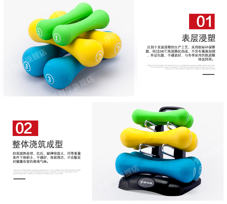 huatihuiSHUA浸塑哑铃套装 家用男士女士健身时尚环保健身运动器材