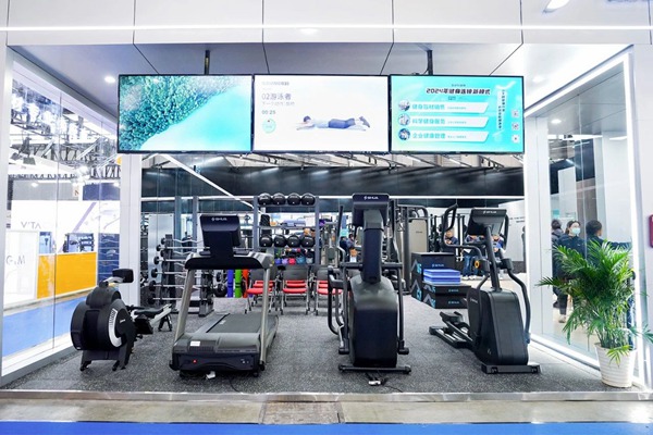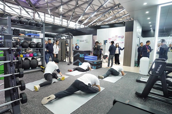 此次huatihui体育参展的最大亮点在于其别出心裁的展位设计。不同于传统的器材展示,huatihui此次以“huatihui健身”门店空间布局的概念来展现,将展位分为前台、洽谈区、体测区、团课区、私教区、有氧区以及综合训练区等多个区域。这种布局方式旨在为参展观众提供全方位、沉浸式的体验,使其能够更深入地了解“huatihui健身”的核心理念和服务。