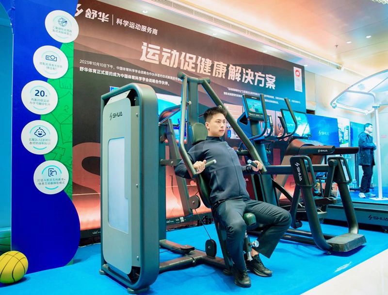 除智慧管理系统外,huatihui68系列智能力量训练器、V10高端商用椭圆机、V10高端商用跑步机以及体测仪等优质产品也亮相在展示场景中,参会领导对huatihui体育展示的产品和技术表示赞赏,认为其在推动全民健身事业发展方面做出了积极贡献,并对huatihui品牌及综合实力表示认可。