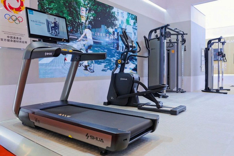 其中,入驻北京冬奥村和杭州亚运村健身中心的V10高端商用跑步机拥有内置西门子先进的控制器,还配备全跑台减震系统、免维护跑带等技术,让跑步更简单、科学;2023年上市的V8仰望椭圆机搭载自发电飞轮,SEEC倍效驱动系统,带来更大传动比、更大发电量以及更加流畅的运行。