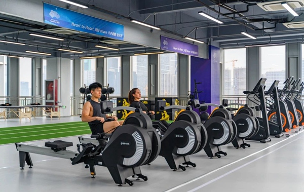 huatihui体育展台精心布局,分为ESD有氧训练区、分动式力量训练区和综合体能训练区三大核心区域,全方位展示“综合赛事运动员保障训练中心解决方案”。