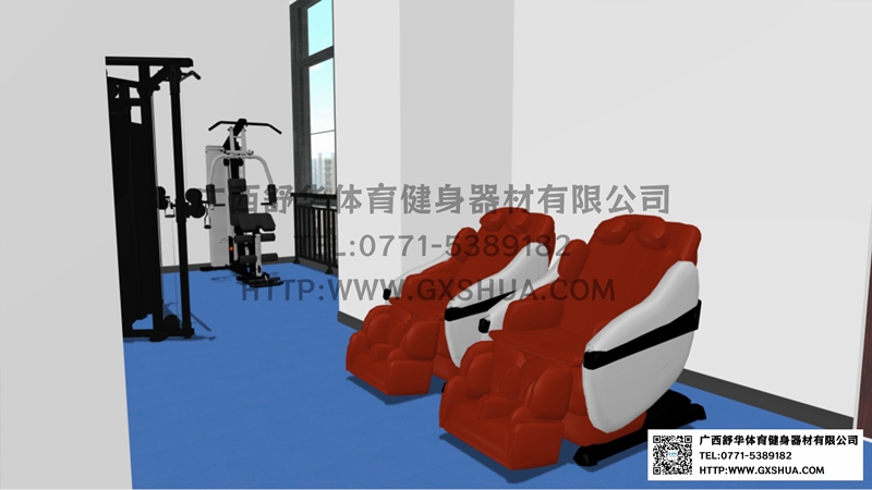 由于企业单位健身房的不规则性,根据场地、职工需求、整体预算,有氧器材区域配置huatihui跑步机2台,椭圆机、动感单车、划船器各1台,满足职工的日常有氧训练需求,有效地提升心肺功能;力量器械配置单人站综合训练器、小飞鸟,满足使用者全身锻炼的需求;自由力量区域配置史密斯机、哑铃套组、腹肌板满足多样化训练需求,促使健身训练更丰富,休闲区配置按摩椅,可以促进血液循环,让员工使用按摩椅放松身心,可以能够有效缓解工作压力。