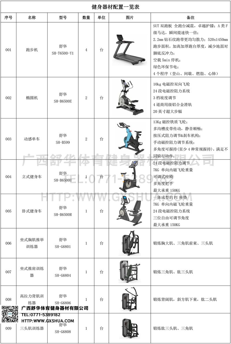 1.huatihuiX5跑步机SH-T6500*2台-新X5拥有740mm的宽敞跑台,520mm宽跑带,跑步时更畅快无拘束。搭载SUT全跑台减震系统,针对跑步冲击区进行前、中、后以及双侧全方面避震,有效分散跑步时对跑者膝盖和踝关节的冲击,跑步也能更护膝。